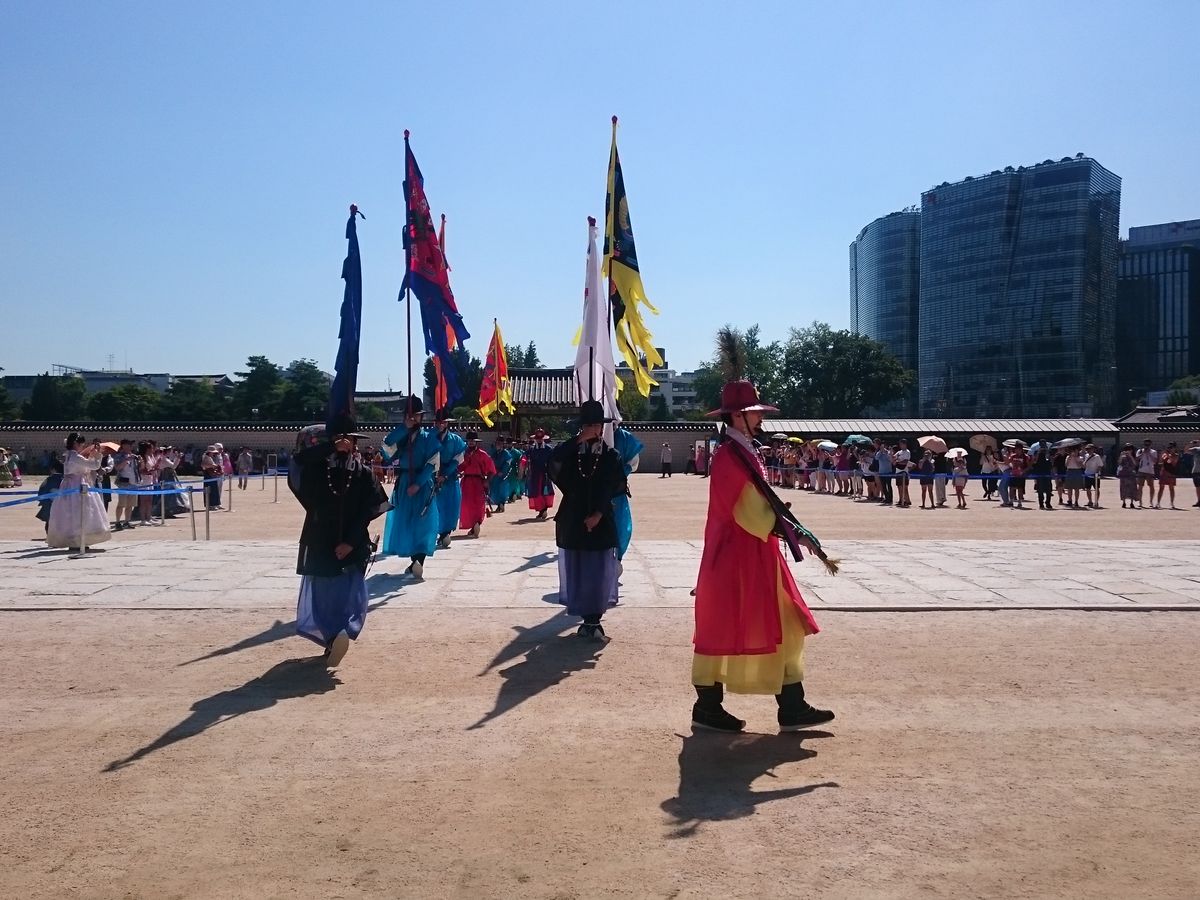 圧巻だったの景福宮での守門将交代式。写真では伝えきれない力強さと、対してなんともいえない抒情を醸し出す音楽に、少し大げさですが、しばし時を忘れました。ポップな記念写真の撮影にぴったりな壁画村、エネルギッシュな屋台が連なる広蔵市場など、正直、値段以上のツアーです。