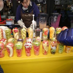 ソウル初めてのお友達を連れて参加しました。今回梨花壁画と広蔵市場は初めての観光でした。壁画は消されてしまったものも多く残念でした。市場は通訳さんが希望のお店まで案内してくれて注文までしてくれます。市場で解散でしたが、地下鉄もバスもありますので心配ありません。この市場で飲んだフルーツジュースが旅の中で一番おいしい飲み物でした。