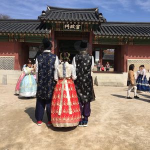繁忙期で日本人も多かったためか、同内容の他ツアーと一緒で20名ほどのツアーでした。韓服のお店の方にも自分で選んだスカートに合わせて手際よく上着を選んで頂けて、ガイドさんにもたくさん案内や写真撮影をして頂けました!強いて言えば、もう少し少人数で敢行して欲しいです。せっかくの機会だったのでもう少しゆっくりじっくり見たかったです。