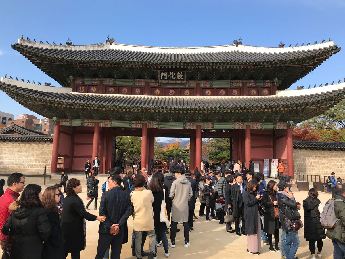 午前中は、朝鮮王朝時代の施設や青瓦台等を見学、ランチ付きで石焼ビビンバを食べ、午後のツアーは世界遺産を含め紅葉の山頂から市内を眺め、街中を散策する内容でした。