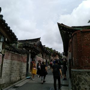 心配していた雨も降らず、京福宮、北村を散策しました。チマチョゴリはフワフワのスカートなので、意外に風通しが良く涼しかったです。気さくで明るいガイドさんが、たくさんの写真を撮って下さるのがこのツアーの一番の魅力だと思いました。有難う御座いました。娘との楽しい思い出になりました。