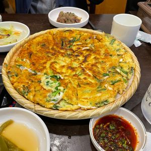 昼食のプルコギは感激する位とても美味しく、ネギチヂミはピザみたいに大きく美味し