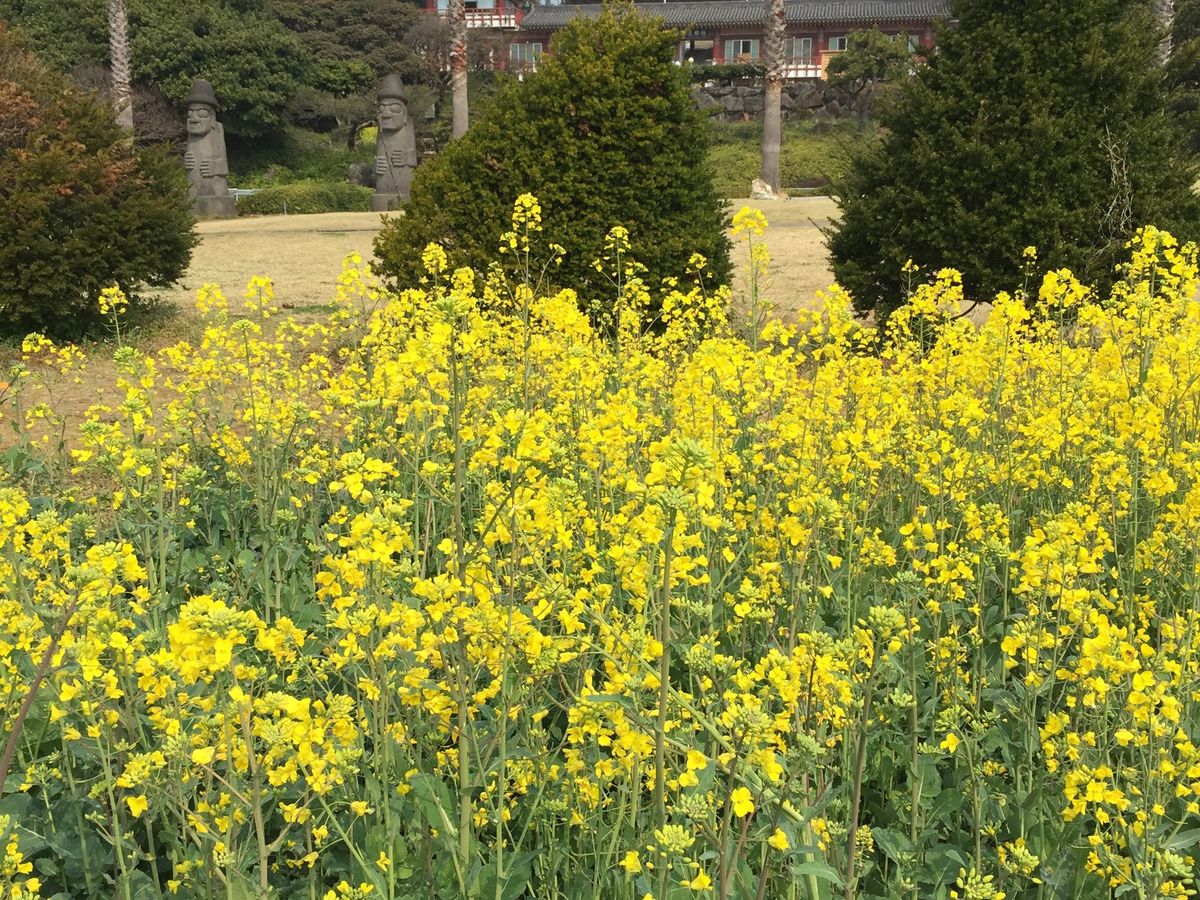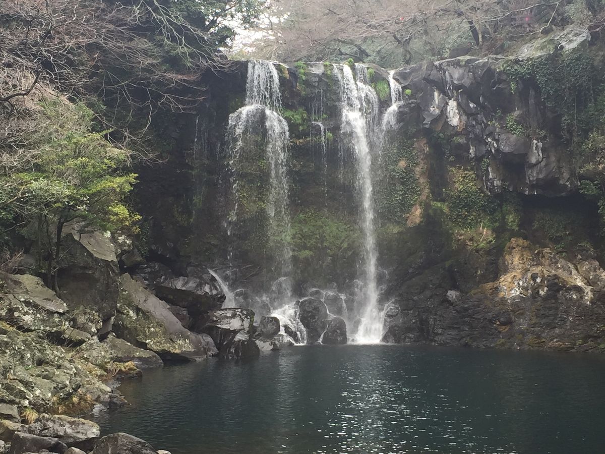 ツアーでは、世界遺産の城山日出峰や万丈窟 城邑民俗村に行き、フリーの一日にツアーではいかないところを行きました。中文あたりの天帝滝、海に豪快に落ちる滝など島をぐるっと一周してみました。「韓国のハワイ」といって観光の人の新婚旅行に行くところ って言ったのですが、緯度が福岡とほぼ同じで、しかも泊まったホテルは、済州市、ハルラ山の北にあり、日本海の方の気候のようですごく寒かったです。ハルラ山の南は、暖かくて気温も3,4度高く風がないところでは、気持ちよかったです