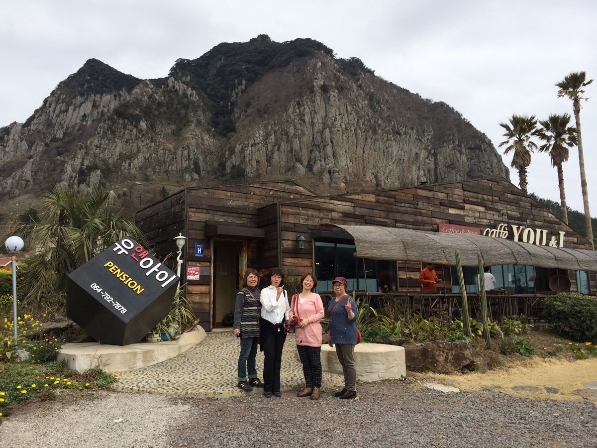 いつもはソウル滞在ですが、今回はチェジュドにしました。右も左もわからない私たち、日本語がすばらしいジンさんの案内で、いろいろ回ってもらえて助かりました。城山日出峰、万丈窟、ソプチコジ、アイリスの白い灯台、きれいな海等…太刀魚やウニとワカメの美味しいス―プのお店、洞窟のカフェ等…