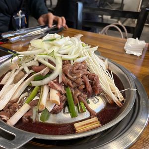 また、お昼は、お店は予約してくださっていたので、待ち時間もなくすぐ食事ができました。メニューはネギチジミとプルコギ。もっちもちのネギチジミと野菜たっぷりにのプルコギの愛称は最高です。