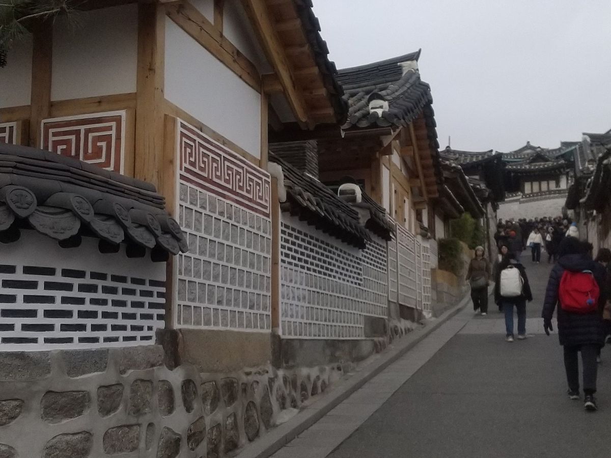 リャンバンの家並や景色の素晴らしいところ、買い物もでき最後は広蔵市場で解散、市場でチヂミやドーナツを食べて大満足。