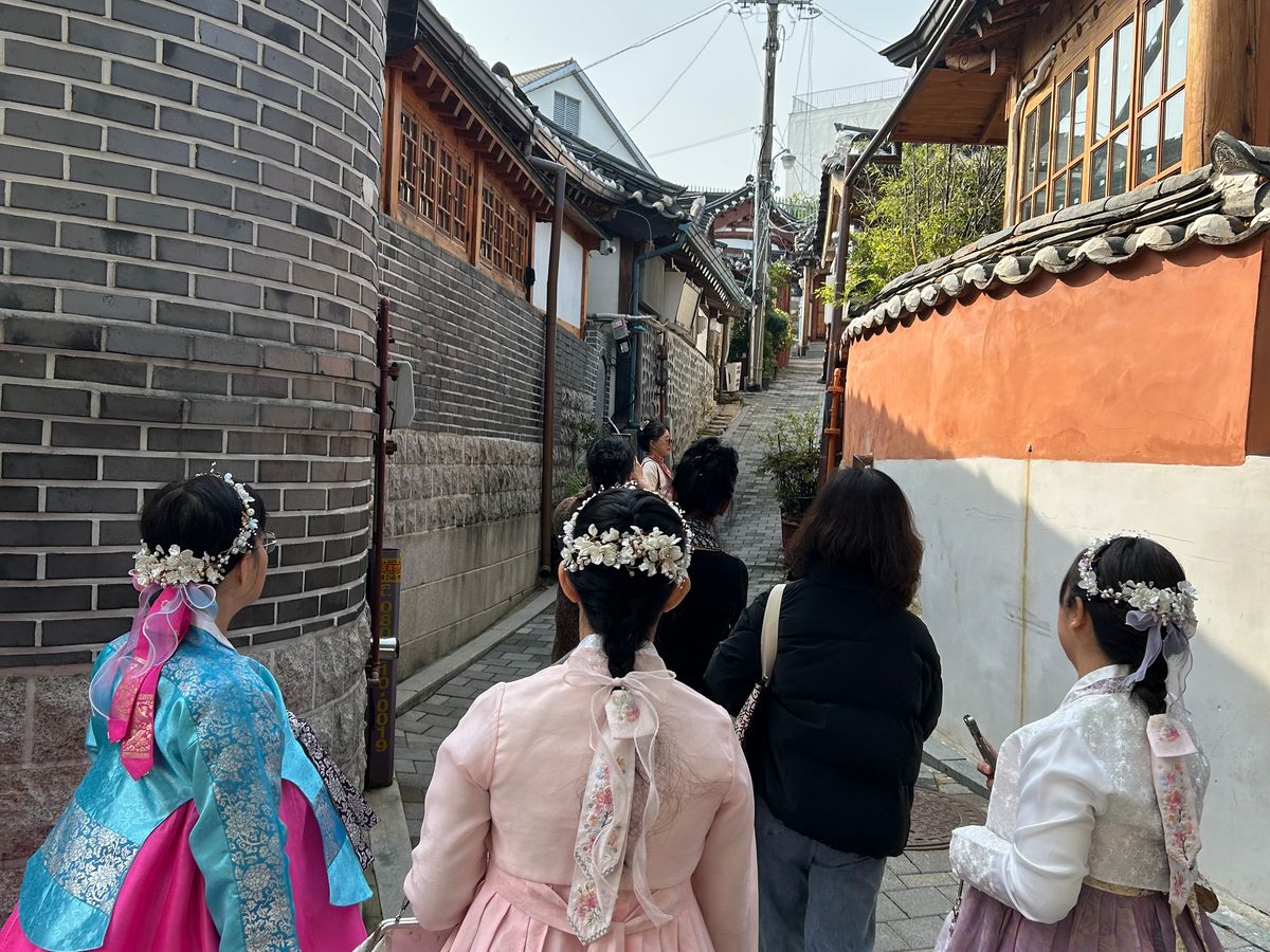 入店して直ぐに餃子スープ、ジャガイモチヂミ等を写真で見せたので、早く提供され、それが凄く美味しくて、キムチも日本の物が好きですが、ここはキムチも美味しかったです。これも、ガイドさんが時間を有効に活用する様に!との配慮です。その後もプランとは違う自分達では行けない、時代劇に出てくる建物が立ち並ぶ所を散策して、ちゃんと説明もしてくれました。本当に素敵な通りで、リノベされて、お店になってたり、生活して居る様でした。金浦空港のオプションの送りも私達の推しの歌を流してくれて、とても親切で楽しい話も日本語に変換して見せてくれるので、言葉に困る事はなかったです。至れり尽せりの最高のガイドさんでした。