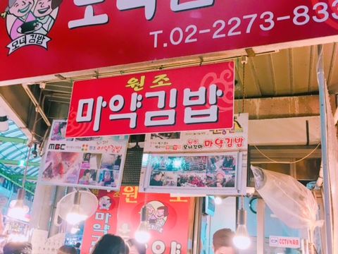 広蔵市場:本日の夕食を食べに。麻薬キンパ(麻薬のように病みつきになるキンパ)、チヂミ、ユッケなど広い市場の中で美味しいお店を名物ガイドさんから教えてもらえ大満足です♪
