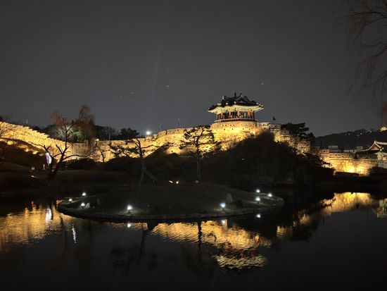 水原華城の夜景はとても雄大で感動しました。