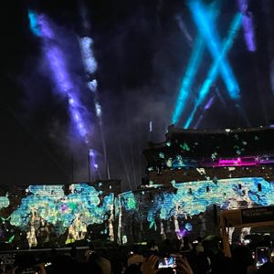 フェスの初日のため、普段の10倍混んでることガイドさんが言っていた。門へのプロジェクションマッピングなど普段ないイベントが見られたが、普段の見る物が減って残念でした。