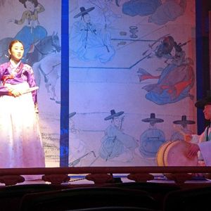 前から韓国の伝統芸能に興味があったので、チケット代が一番安かったこちらで予約しました。劇場は小ぶりな感じでしたが、楽器演奏者や出演者が近く感じて良かったです。各舞台の前に上部に電光表示で説明が出るので内容が分かりやすかったです。エキサイティングな舞台で、あっという間に時間が過ぎてしまったという感じでした。