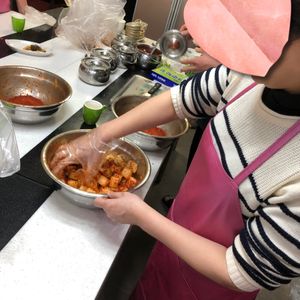 韓国料理が好きで、旅行のたびにキムチを買っていました。今回一人旅でしたので一人でも参加できるキムチ作りに挑戦してみました。最初に、デパートで買うより高くつくとの説明がありましたが、国産の材料と無添加の調味料のみ使うので納得しました。白菜・きゅうり・大根・エゴマと4種類のキムチを教えてもらい作りました。自宅で食べていますが、確かに市販品とは違います。辛さも少なめで日本人向けの味です。おいしいです。サービスもいいです。