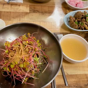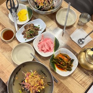 写真のお料理は冷麺と餃子(マンドゥ)と白菜のチヂミなのですが、これがまた絶品で…お惣菜もおいしくて…また是非この定食屋さんに行きたいです😌😌