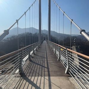 つり橋は、自分たちでは行けない場所で、自然の中で景色も最高でした。ガイドのキムさんとは、韓ドラ話で盛り上がり。わたしたちのしらない、韓国ドラマの裏話や、北朝鮮との歴史の話、行く道中で川の向こうがわの北朝鮮も見られて、とっても充実したツアーとなりました。お昼ごはんのソーメン美味しかったです。