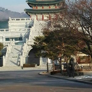 大統領官邸の青瓦台というのは、官邸そのものではないようです。ここでは、VRで官邸を見たり、官邸を模した書割を前にパノラマ写真を撮ったりできました。大統領官邸の紹介をしている展示場といった感じで、ちょっとがっかりでした。いちおう、本物の官邸も少し離れた場所から見ることはできましたが、物足りない感じがしました。