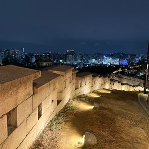 500年前の石垣がライトアップされて美しく、かつてSeoulの街をぐるりと囲って街を守っていた姿を思い起こさせます。その文化財に触れることもでき、感激。