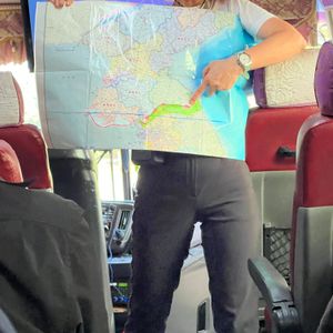 行きのバスでは、ツアーガイドの方が日本語で地図や資料を使いながら、とてもわかりやすく説明してくださり、簡単ではありますが事前学習OK。