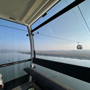 民間人統制区域手前の臨津閣平和公園で戦前の時に走っていた機関車や望拝檀、自由の橋などをみて、ロープウェイに乗り、リボンに願いを書いて紐で縛ります。ロープウェイの費用は当日窓口で払います。
