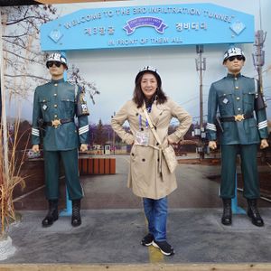 ガイドさんのホン・ユソンさんは日本語堪能で行く先々での説明がとにかく分かりやすく、その事柄の背景などもお話しして下さるので非常に興味深く引きつけられるものがありました。かなりお勉強されて説明をされていると感じました。質問にも的確に答えて下さり、困った時にも快く柔軟に対応して下さいました。撮影ポイントも教えて下さるし、お一人様にはすすんで写真を撮って下さっていました。韓国と北朝鮮、そして韓国と日本の歴史を少しだけ学んで参加すると、ガイドさんのお話がより入りやすいかもしれません。