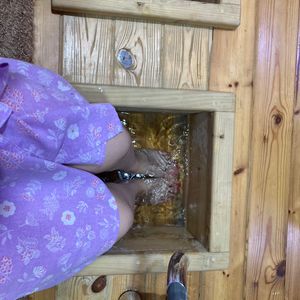 施術内容や順番を丁寧に説明してくれたあと、着替えて足湯をしてマッサージをしてくれました。