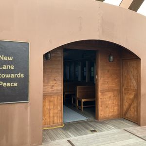臨津閣でも戦争に関係する展示の説明をいただいた後自由時間がありました。橋の上のスカイウォークに行ったり、軽食を食べたりできます。お手洗いもあります。興味があれば北朝鮮のお札や切手を買えます。