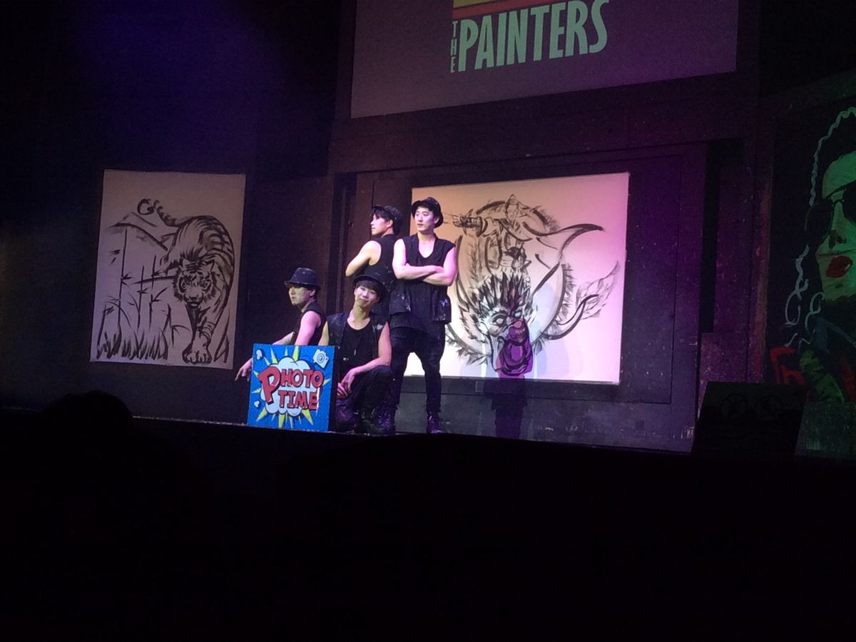 カッコいいお兄さん4人が、色んなパフォーマンスをしてくれます観客も巻き込んで大笑いした後には、素晴らしい絵を描きあげて、感心のため息が!ダンスも見事。ショーの後、一人ひとりとツーショット写真も撮れて、楽しいひとときでした。
