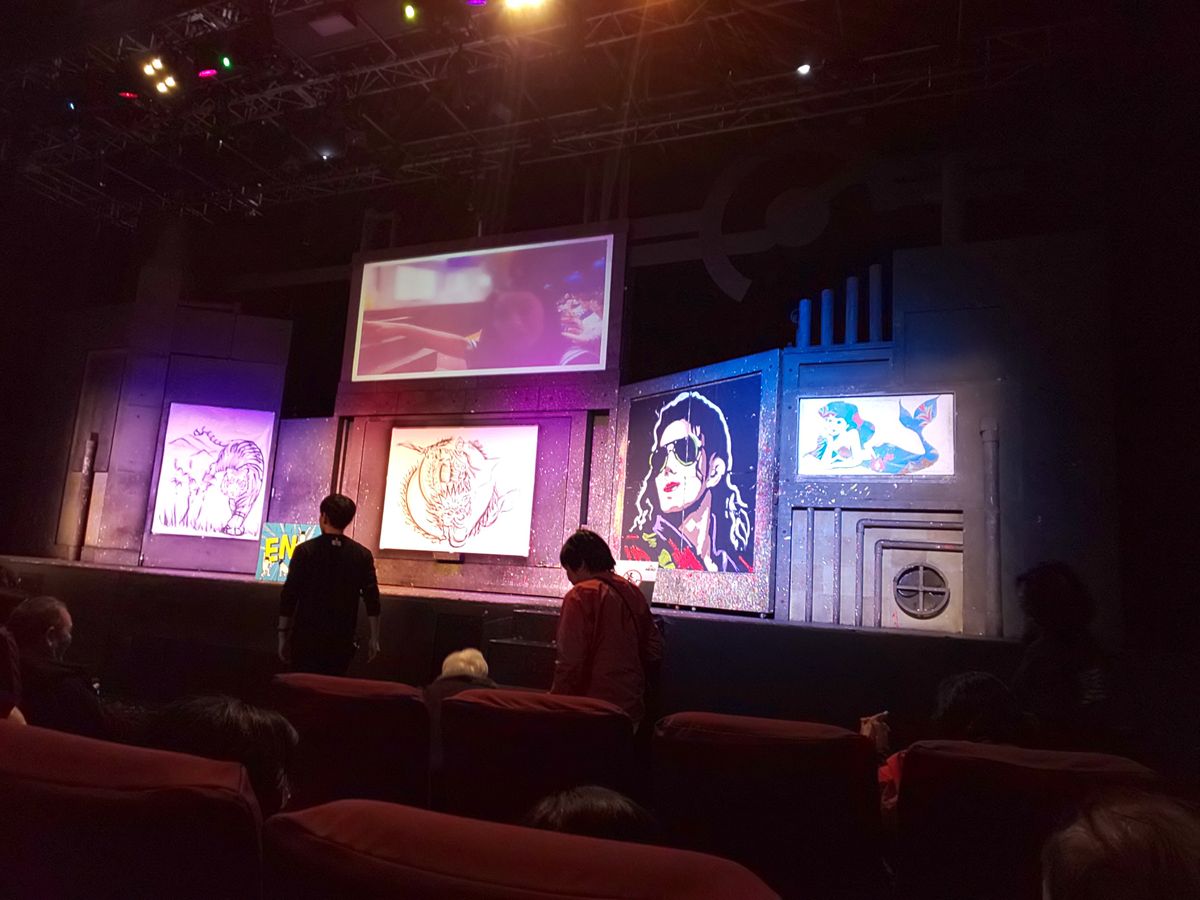 キレのあるダンス、目の前で完成していく素晴らしい絵。言葉がわからなくても楽しめる素晴らしいショーでした!