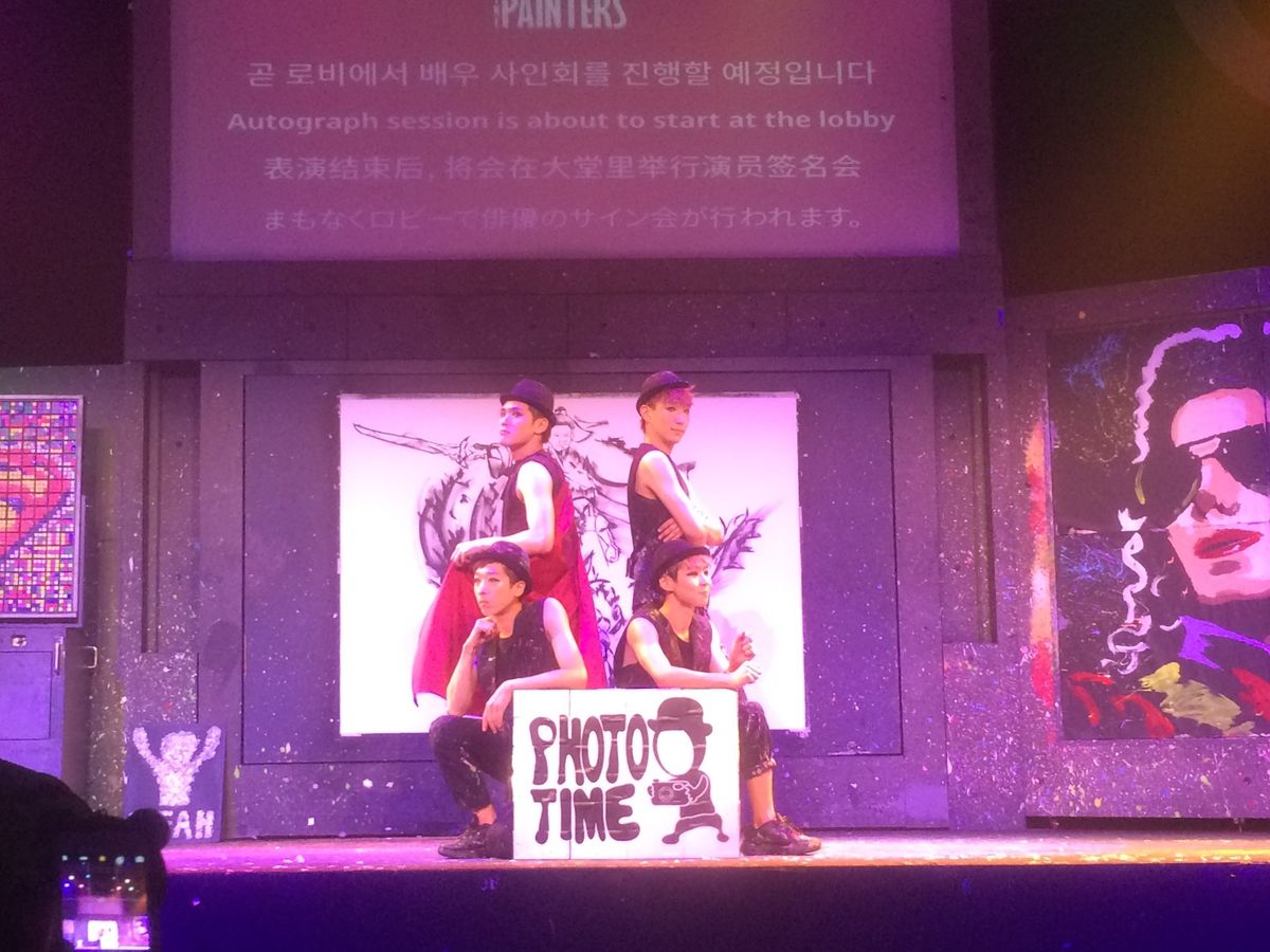 ペインターズは日本のテレビで紹介されたり、評判は聞いていましたが、実際に見て予想以上に楽しめました。4人の描いた絵を合わせたらマイケル・ジャクソンが完成したり、その他リズミカルで、描かれる絵はとても上手で、また見てみたいと思えるショーでした。