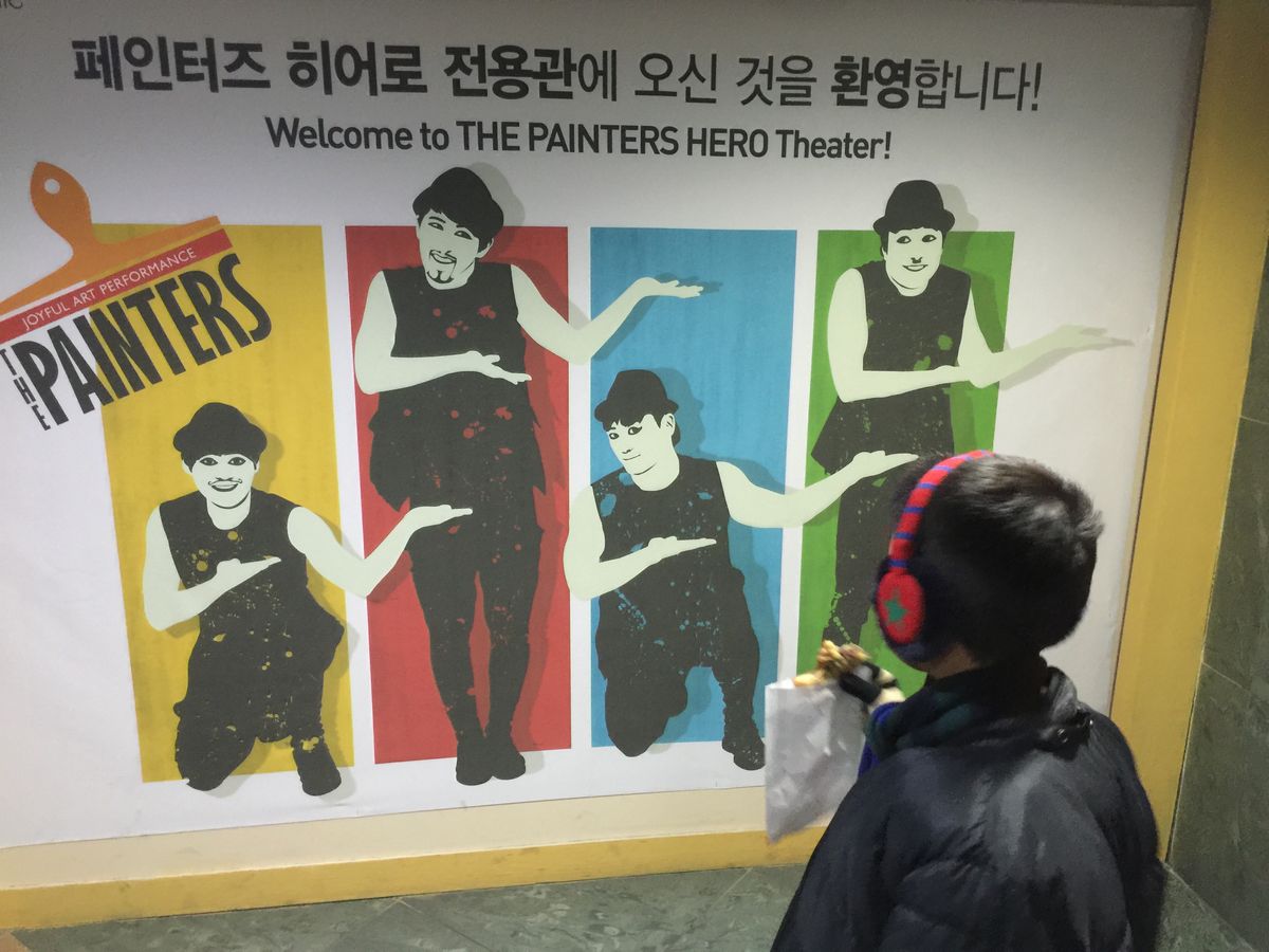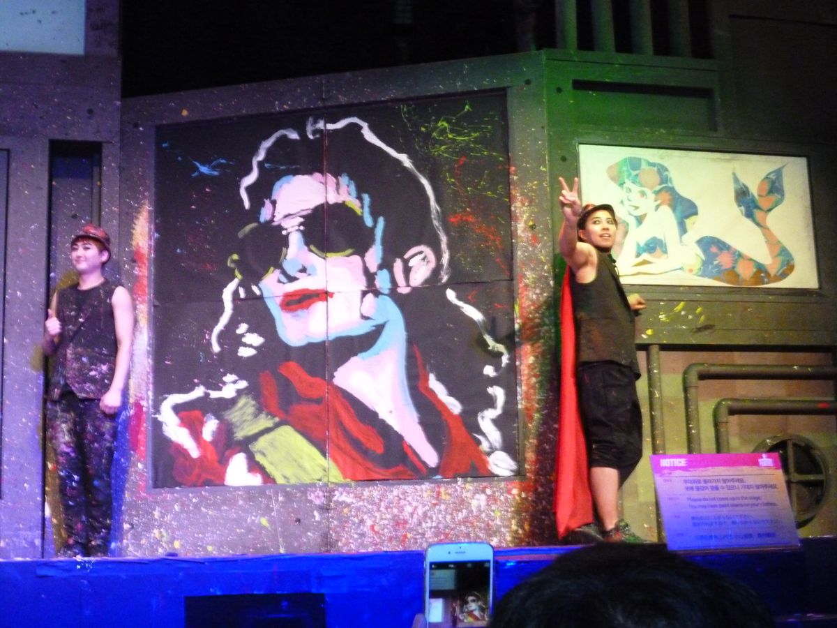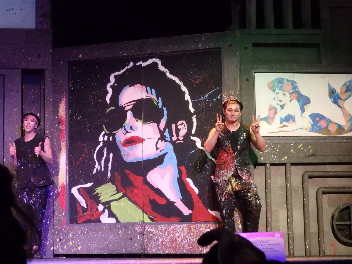 期待を裏切られるほどの…感動!恐らく、1名無料にならなければ行っていなかったと思います。侮っていました。まだ観覧しておらず、口コミを見て迷っているみなさん。行って損はありません。絵ができあがるまでの「過程」も、出来上がった「成果」も、そのすべてがエンターテインメントとして楽しめます。最も素晴らしいのは、【言葉は不要・世界中の老若男女が笑えて驚ける】ということです。小さな舞台と少ない演者ながらも、プロジェクションマッピングや光を使って視覚効果も工夫が凝らされていました。もう一度見たいほどに、韓国旅行の素敵な思い出になりました。あの変なメイクとしょーもないコントも最後には好きになっているはず。笑