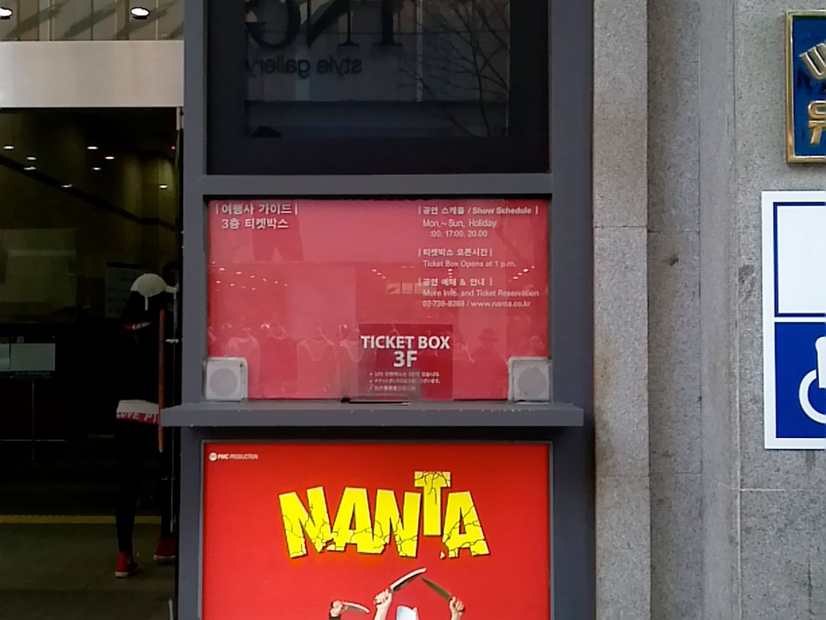 場所も明洞の中心でわかり易く、迷わずに到着し、チケットの引き替えから座席までの案内と、すんなり進みました。