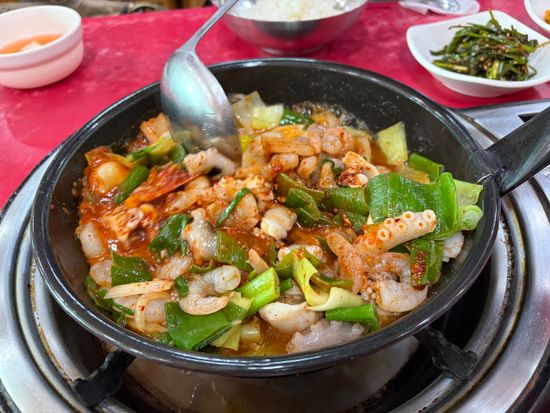 昼食は海雲台の人気店で念願の「ナッコプセ」。辛さを調整しながらいただきましたが、具材の旨味とタレが絶妙に調和してとても美味しく、印象に残る一品になりました。