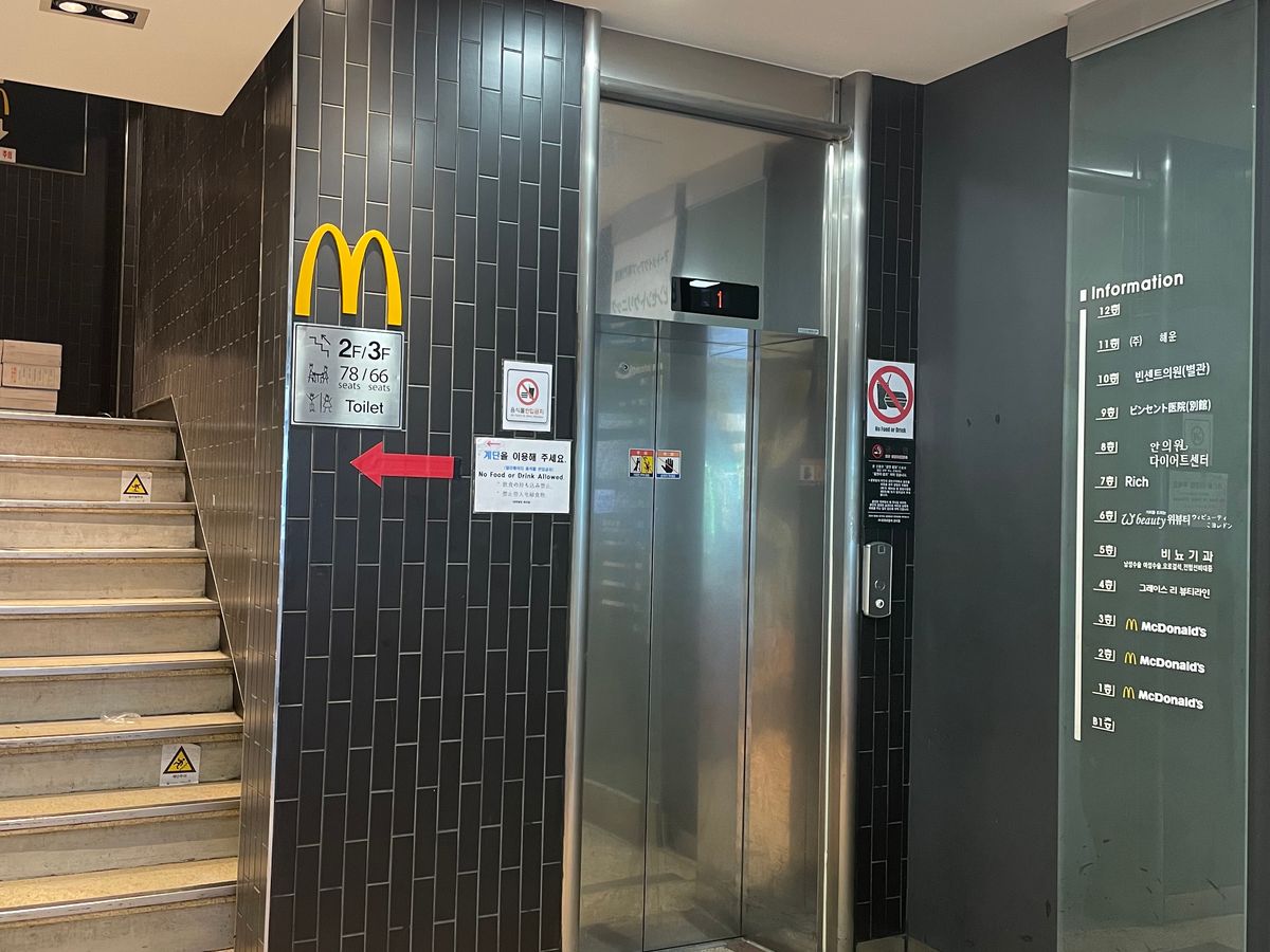 一階店舗横の奥にエレベーターがあります。たまたま電気がついてなくてわかりづらかったです。