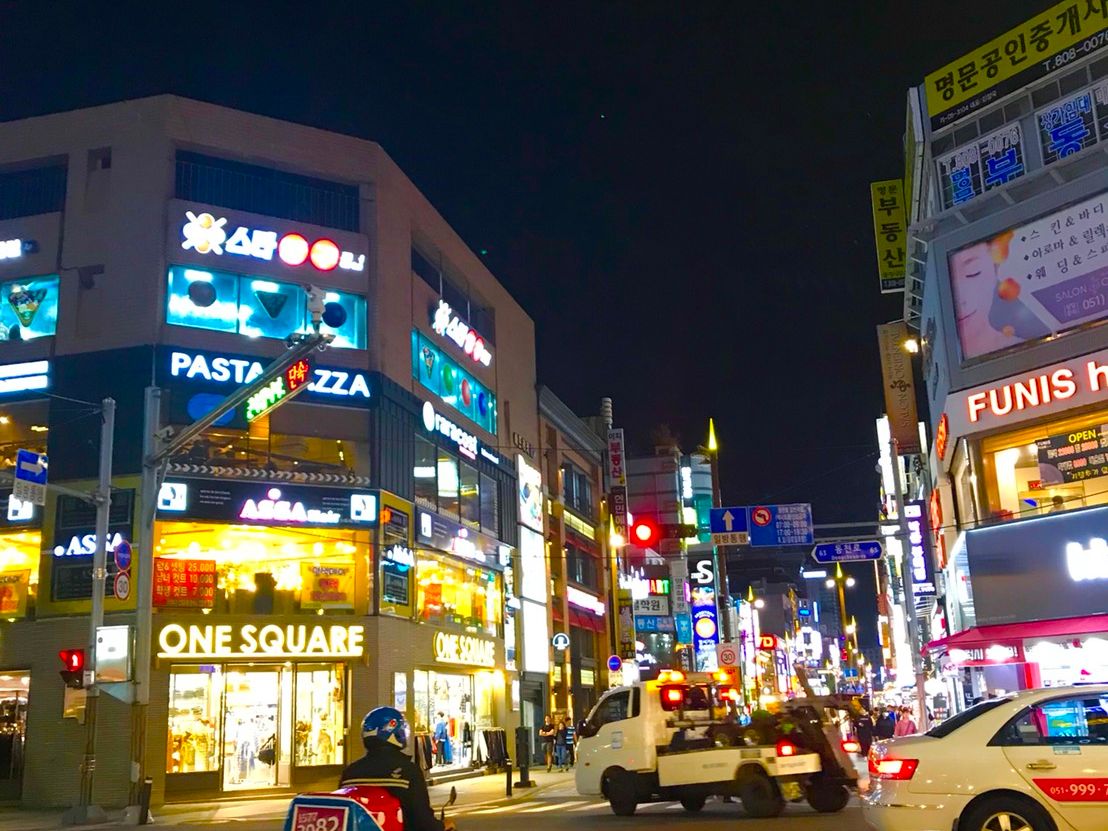 ロッテホテル釜山に迎えに来ていただき、徒歩でまずホテルの周辺を散策しました。色んなお店が並んでいて、夜の街はとても賑やかでした。夕食は綺麗なレストランでデジクッパ!豚肉がたくさん入ったスープに色んなものを入れて味を付けたり、ソーメンを入れて食べたりご飯を入れて食べたり好きなようにして食べるのです。その後私たち二人だったのでタクシーで山の上からの夜景観賞、レインボーブリッジを設計した方にアドバイスをうけて作ったという大きな橋イルミネーションがきれいです。海雲台のビーチを通って大橋を渡って帰りました。とても親切でやさしいガイドさんでとても良かったです。ありがとうございました。