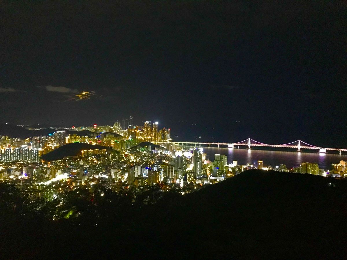 前日の雨の中での1日釜山観光(雨でも楽しかったです)のときと同じガイドの方でとても安心できました。一人旅の私にも気さくに声をかけていただき不安なく両日過ごせました。とても旅行客だけでは入れそうもないテジグッパ専門店、最高の味でした。山頂からの夜景、耀くイルミネーションと月が海にも映りとてもきれいでした。これがナイトツアーの醍醐味ですね。これから一人旅でも不安なく楽しめそうです。