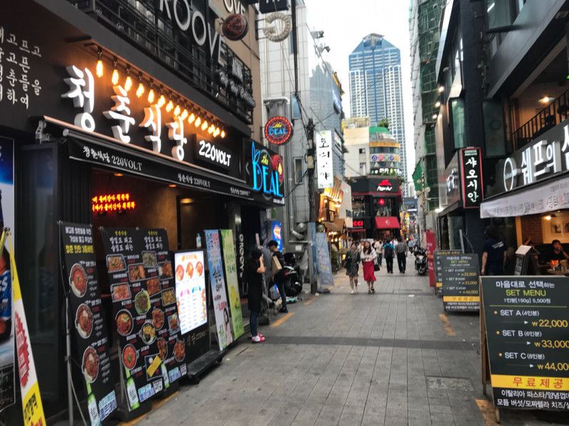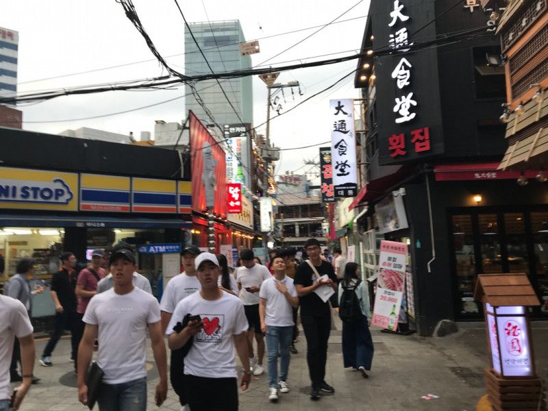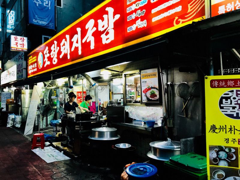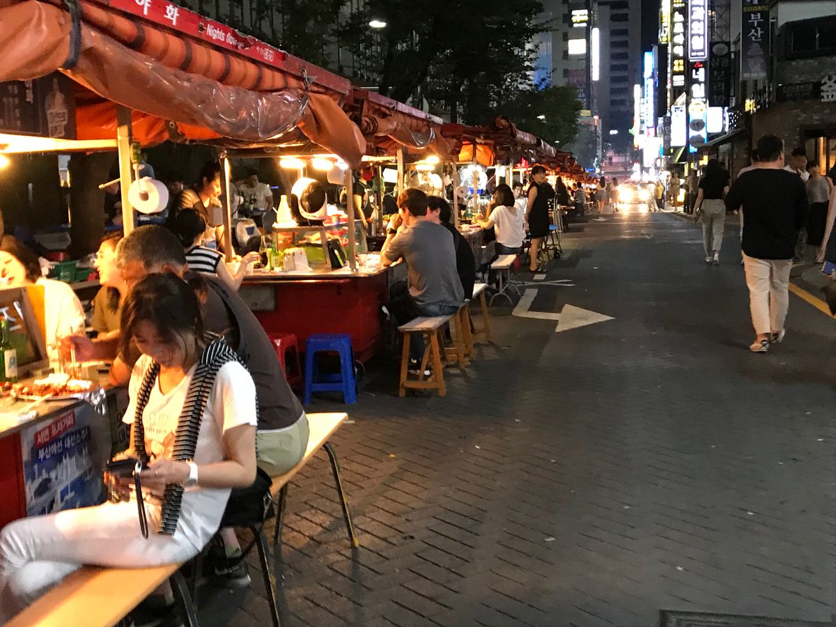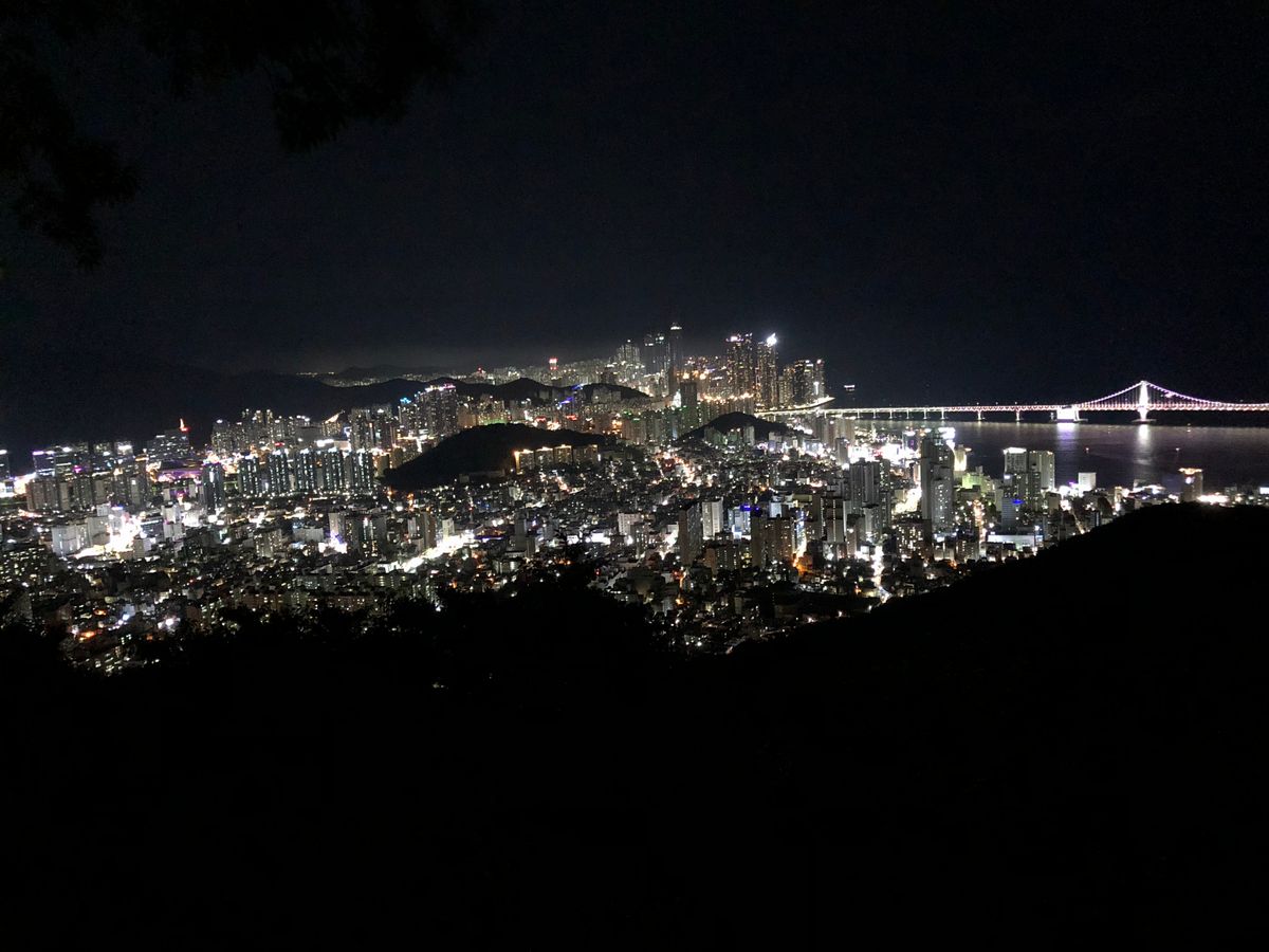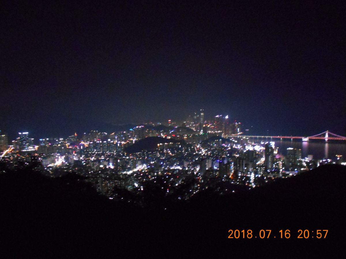 夜の屋台街、飲食街をいろいろ説明してもらいながら、歩き、その後、釜山名物デジクッパをマッコリ付きで満喫し、夜景を見に山へドライブ。見事な釜山の夜景でした。