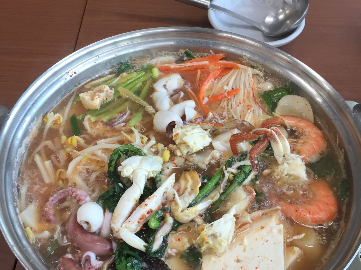 行った日は更にとても寒く春らしさは全くありませんでしたが、海鮮鍋がとにかく海鮮が山盛りで出汁も美味しくて体が凄く暖まりました。追加した海鮮チヂミはかなり美味しかったです。