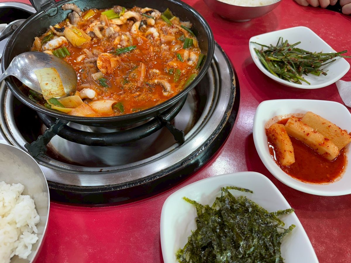 昼ごはんはナクチボックムが食べたいと答えると、お店にも案内してもらえ、オーダーもしてくれました。