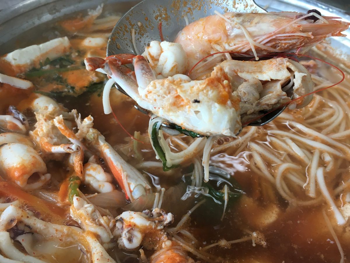 海鮮鍋も食べきれない程、盛り沢山の具でビックリでした。味は辛さ控え目を希望したら丁度良く美味しかったです。