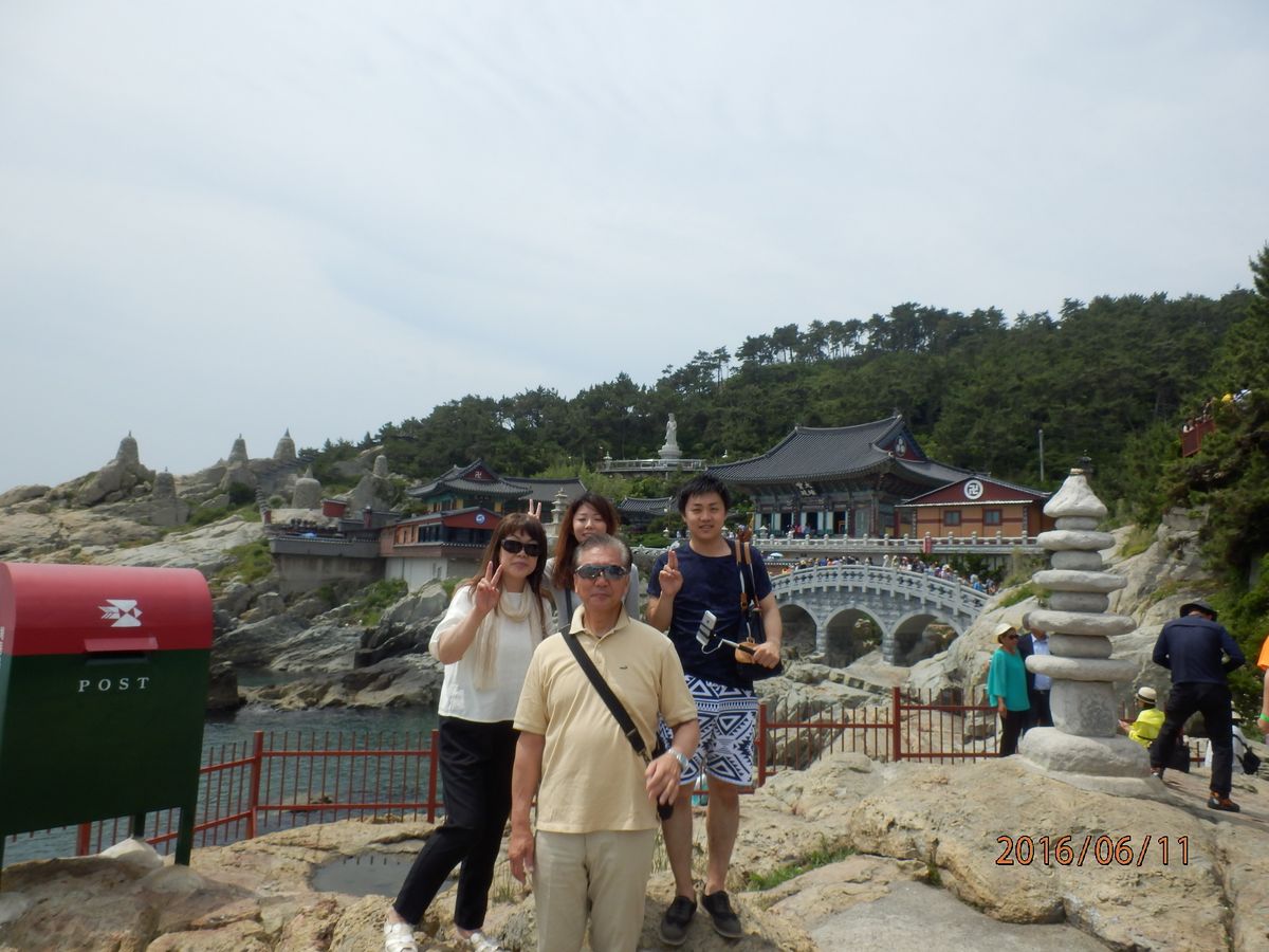 当日は晴天、プサンの名所である「海東龍宮寺」は中国人観光客が多かったが、ガイドの詳しい説明であっという間に時間が経った。ガイドとドライバーの計らいで、プサンのマチュピチュもどうかとの誘いがあったが、中国人の観光客とバッティングの可能性もあり断念し次回に訪れることとした。観光を終えた後、当方の依頼でチャガルチ市場付近までの移動を快く受けてくれたドライバーにも感謝している。今回、短時間の観光であったが、妻と娘夫婦は喜んでいた。