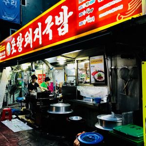 夜の屋台街、飲食街をいろいろ説明してもらいながら、歩き、その後、釜山名物デジクッパをマッコリ付きで満喫し、夜景を見に山へドライブ。見事な釜山の夜景でした。