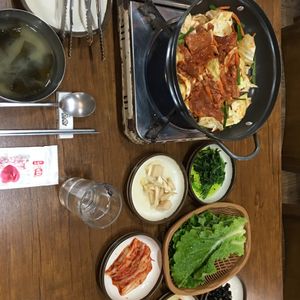 昼食 あわび 海鮮鍋 キムチ おいしかった。