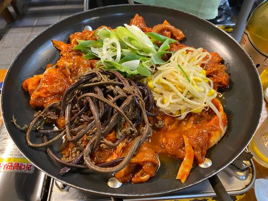 昼食は、味付け黒豚焼きということで、奥様がまったく辛いものがだめなのですが、それなりにコクがあっておいしいとパクパク食べていたのにびっくりしました、私もチェジュマッコリと一緒に大満足の昼食でした。