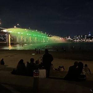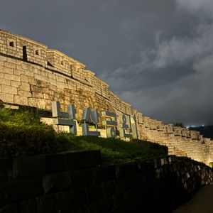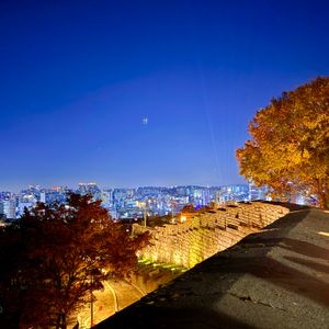 雨が降ったり止んだりで、霧が立ち込めてNソウルタワーは全く見れませんでした。しかし雨でもレインボー噴水は開催され、すごく感動しました。さらに駱山公園ではライトアップされた城壁跡が美しかったです。