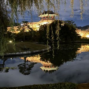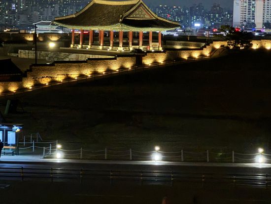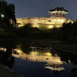 夕陽が沈んだ直後でライトアップされた水原華城はとても綺麗でした✨✨さすが世界遺産、長くに渡って保存されているだけあって素晴らしかったです。本場の水原王カルビも美味しく堪能しました。