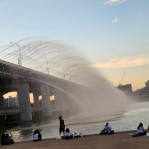 橋の噴水は雨の日ふ中止するので注意が必要で橋の道路で下ろされて、噴水観てすぐ移動みたいな