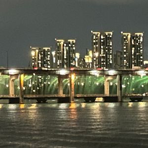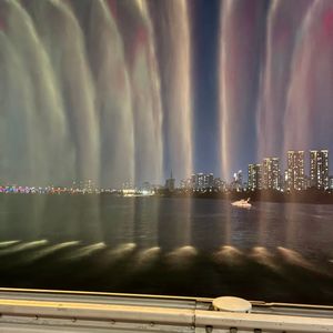 6/19に参加しましたがこの時期のソウルの日の入りは19:50過ぎ。夜景を見るなら20:30発のクルーズがおすすめです。クルーズ船のルート上から見るレインボー噴水は少し離れているのと、逆側を見る感じになりますがそれなりには楽しめます。生演奏も良かったです。