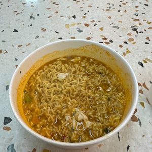 その後、ルミスタジオの一角で、漢江ラーメン、今、有名な、漢江でコンビニで買った袋麺を機会にかけて作るラーメンを社長さんのご厚意でいただいている間に、ガイドさんがサダキンパに行って、キンパとトッポギを買ってきてくれました♪