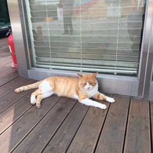 6歳の子供は終盤少し疲れ、飽きてきていましたが、カフェの猫をなでられて満足していました。