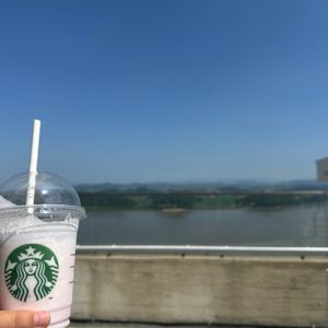 パスポート持参で行くスターバックス、公園の入り口には韓国兵、もっと緊張感漂う感じを想像していましたが、絶景の吊り橋、映えスポット、そして肉眼でしっかり川の向こうに北朝鮮!!