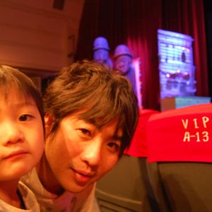 劇場でチケットをもらったら、早くから予約していたこともあり、なんと最前列の中央の席で驚きました。舞台が始まるとすごい迫力で、途中で舞台からキャベツや人参が飛んできたりして、一瞬も気を抜けない楽しい(?)舞台でした。途中でお一人の方が舞台でパフォーマンスをされるシーンがありましたが、言葉の通じない全ての人の心をつかんで、爆笑させるのはすごい技だと関心しました。途中で息子を舞台に上げていただいてパフォーマンスに参加させてもらって、記念品をもらったり本当に楽しい時間を過ごさせていただきました。また機会があれば是非見に行かせていただきます。ありがとうございました。